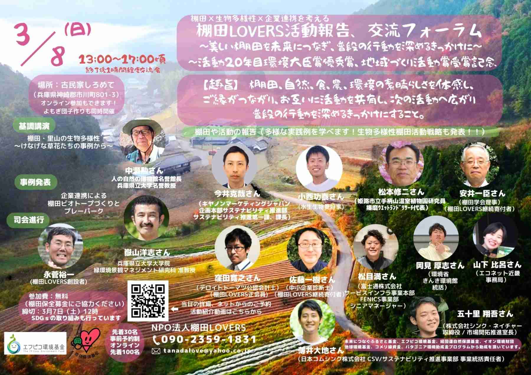 棚田×生物多様性×企業連携を考える 棚田LOVERS 活動報告・交流フォーラム ~活動20年目、環境大臣賞優秀賞・地域づくり活動賞受賞記念~