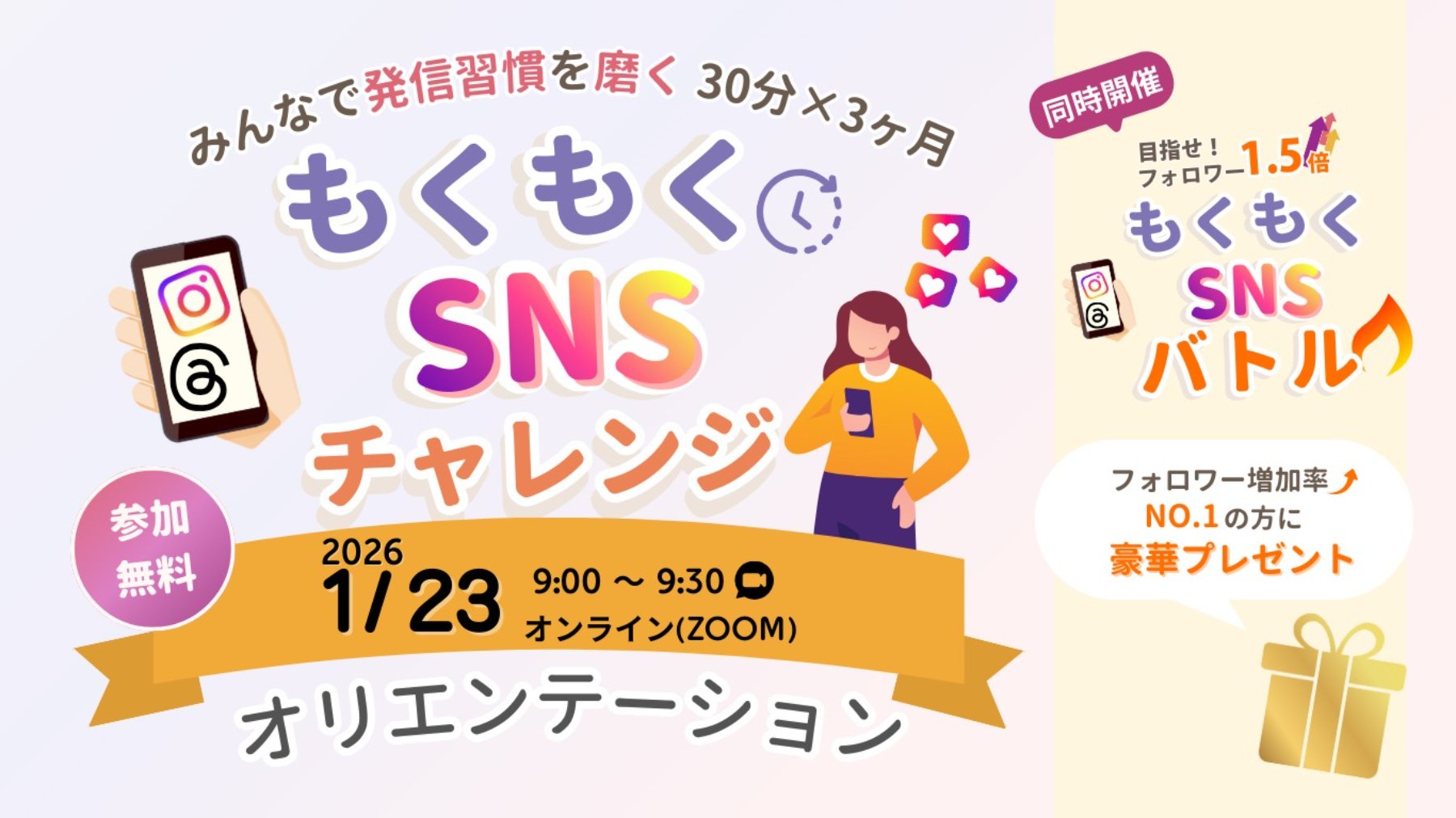 もくもくSNSチャレンジ・バトル 〜Instagram & Threads フォロワー1.5倍大作戦〜