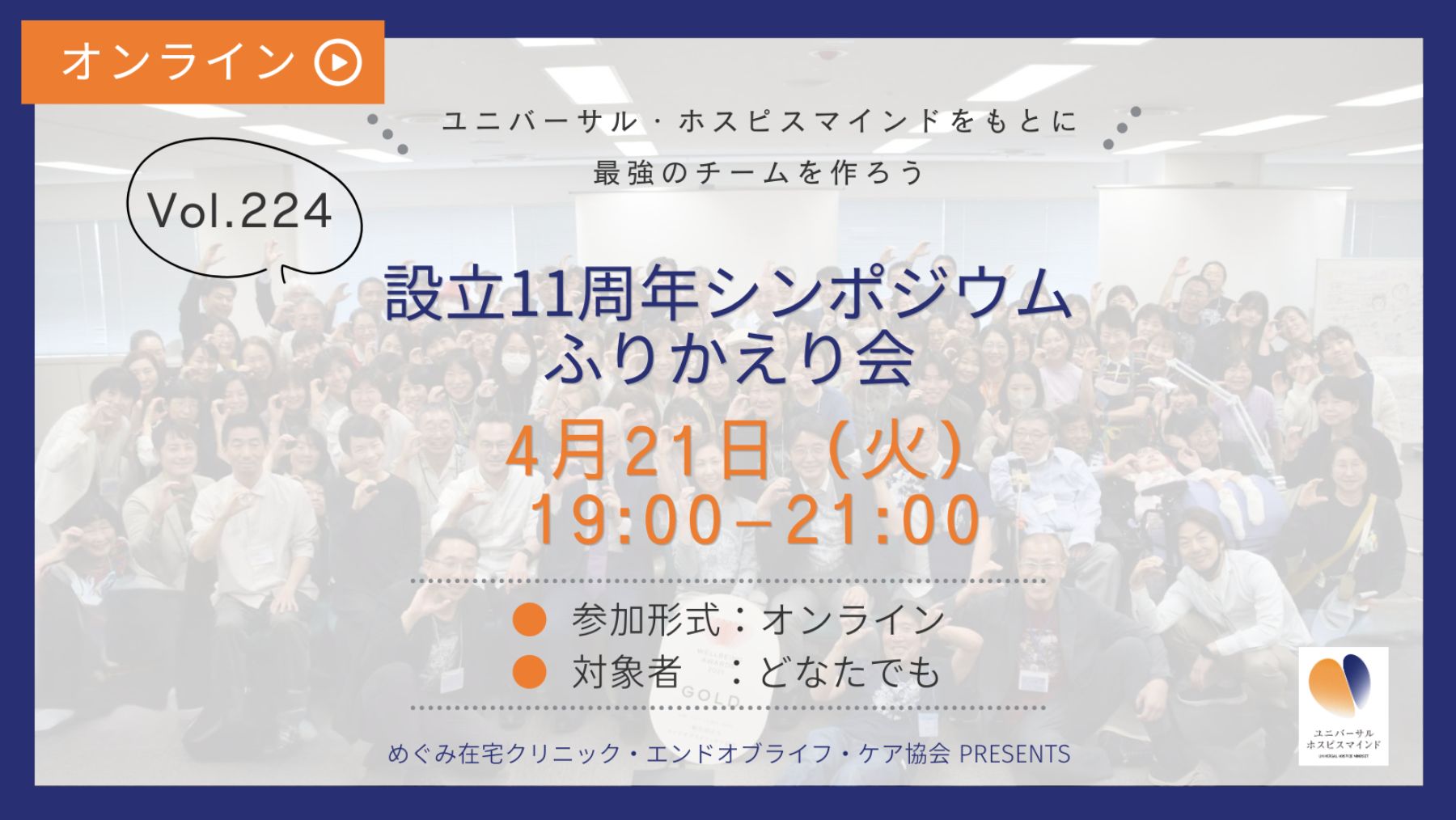 【参加無料】設立11周年シンポジウム ふりかえり会:第224回 ユニバーサル・ホスピスマインドをもとに最強のチームを作ろう(2026/4/21、オンライン)