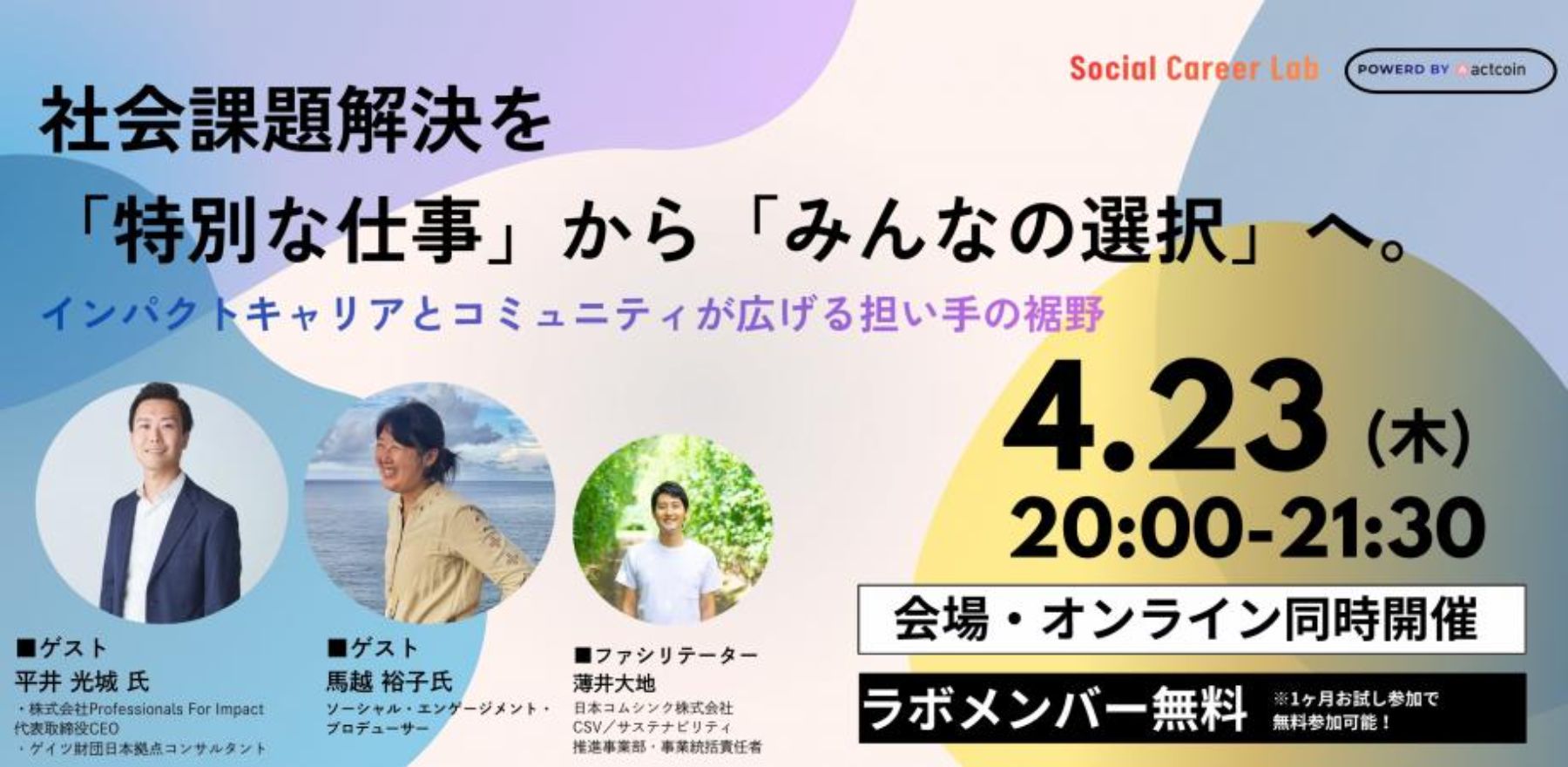社会課題解決を 「特別な仕事」から「みんなの選択」へ。 インパクトキャリアとコミュニティが広げる担い手の裾野